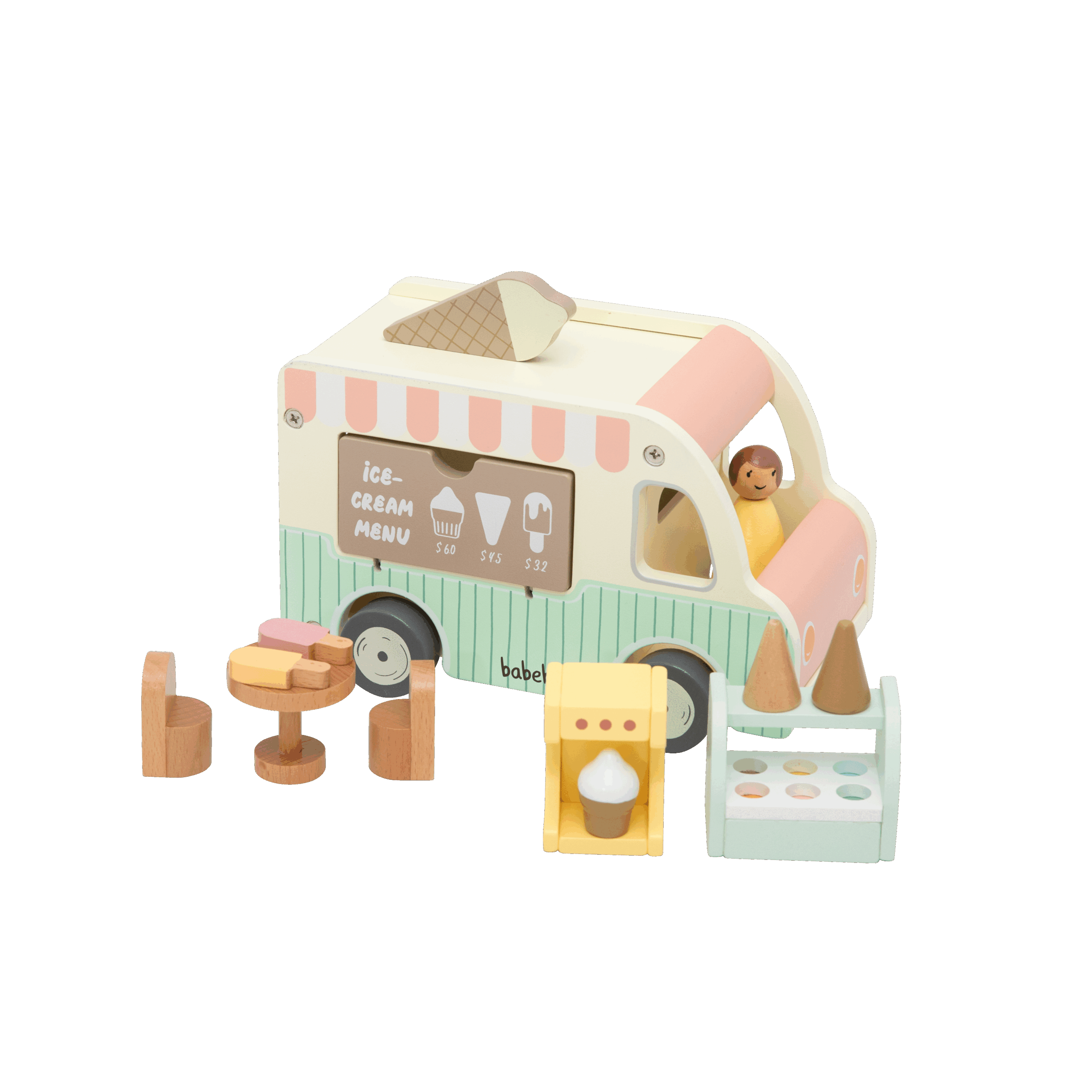 O conjunto inclui o caminhão de sorvete com design encantador, cones, acessórios e personagens que tornam a brincadeira ainda mais divertida e interativa.