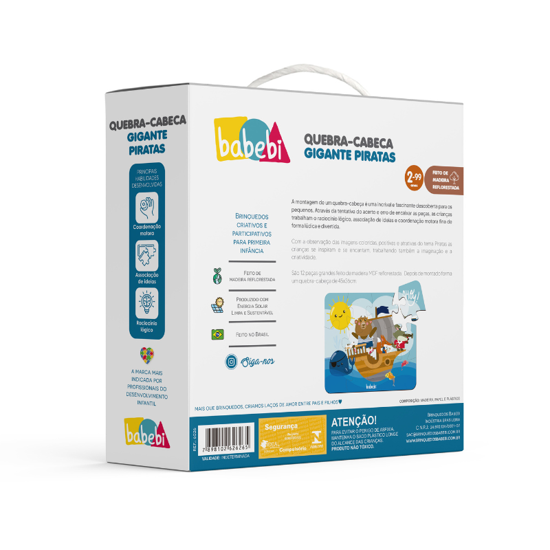 O Quebra-Cabeça de Encaixe Transportes, Cores e Formas convida a criança a explorar diferentes meios de transporte enquanto aprende a reconhecer cores e identificar formas. Com peças grandes e resistentes, é ideal para estimular a curiosidade e a autonomia dos pequenos.