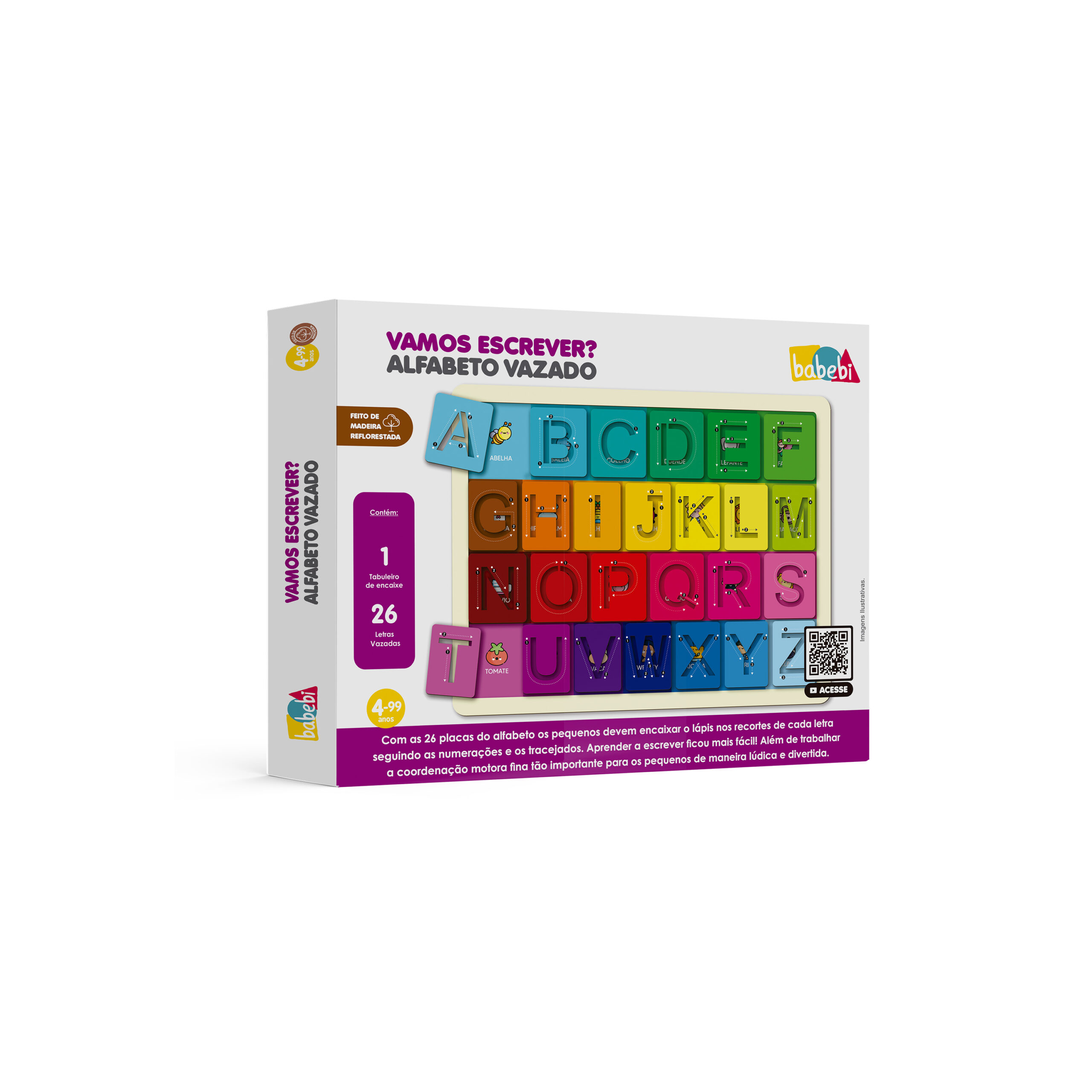 Contém 1 tabuleiro com 26 letras vazadas. Indicado para crianças a partir de 4 anos.