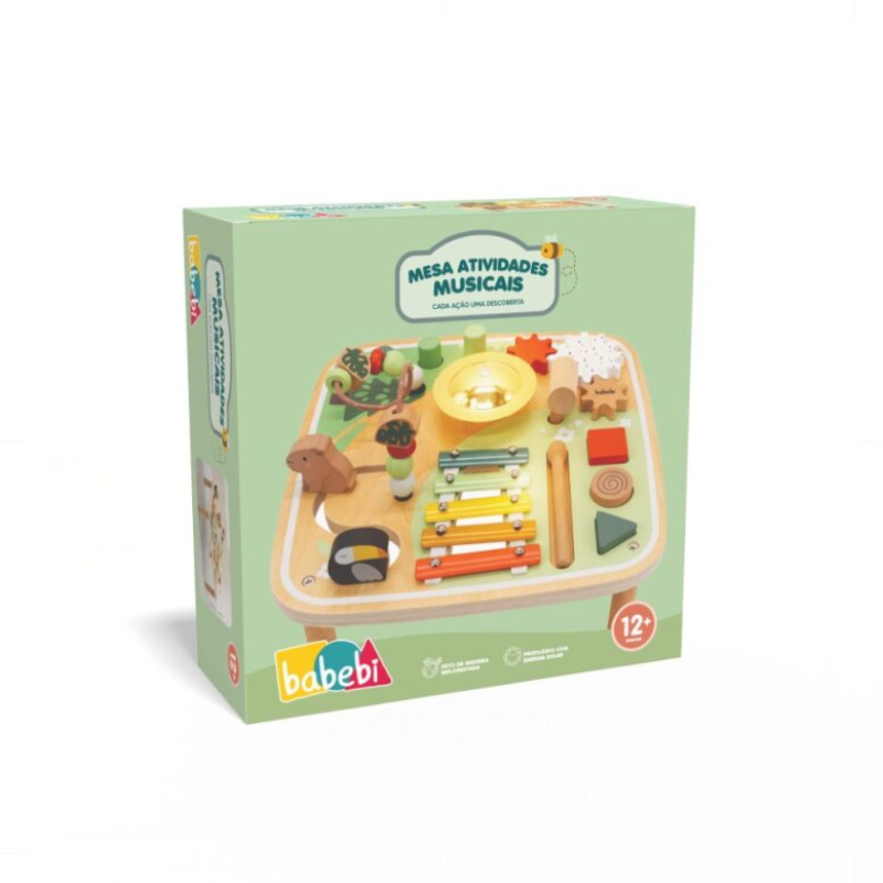 A Mesa de Atividades Musicais é um convite para explorar sons, cores e descobertas desde os primeiros meses. Com diferentes instrumentos e elementos interativos, estimula a curiosidade natural da criança enquanto desenvolve coordenação motora, percepção auditiva e sensibilidade musical.