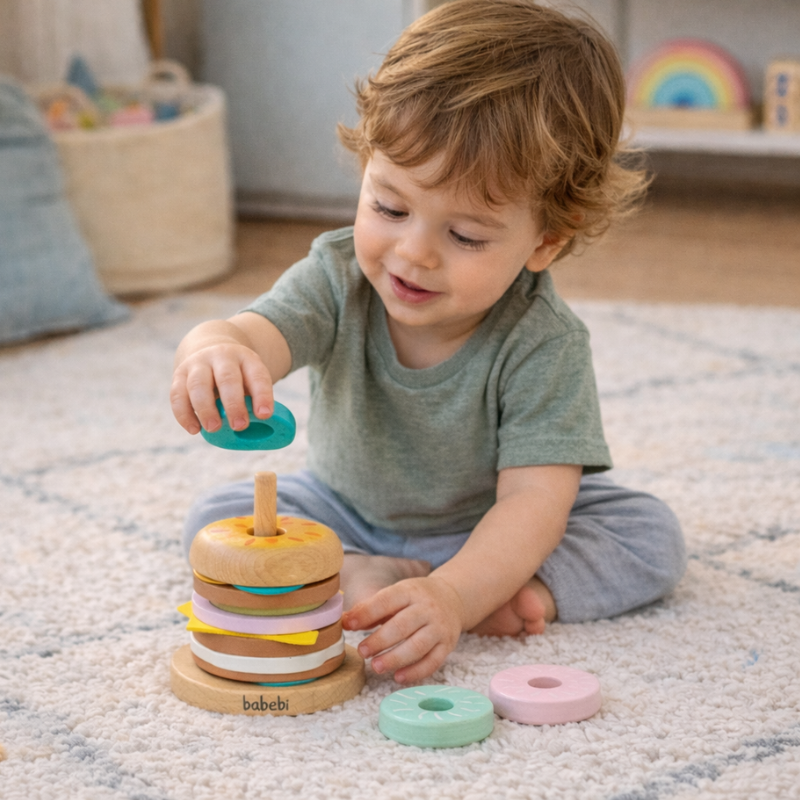 O Monte Seu Hambúrguer é um brinquedo de madeira que transforma o faz de conta em uma deliciosa experiência de aprendizado. Com peças coloridas para montar e desmontar, a criança cria combinações, explora formas e desenvolve habilidades enquanto brinca.