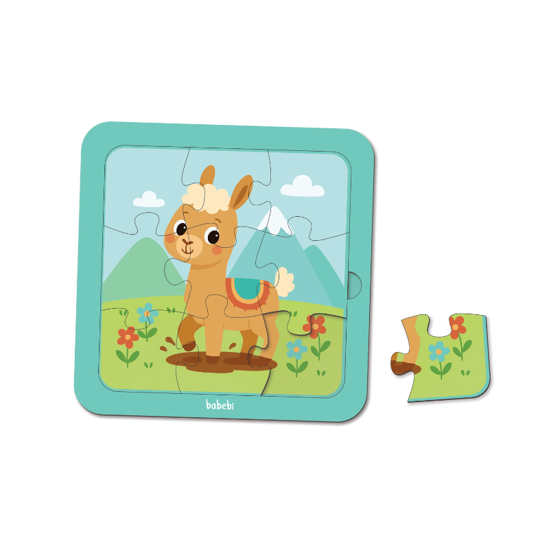 Ao encaixar cada peça e formar a imagem completa da lhama, a criança desenvolve coordenação motora, percepção visual e concentração, fortalecendo habilidades importantes nos primeiros anos.