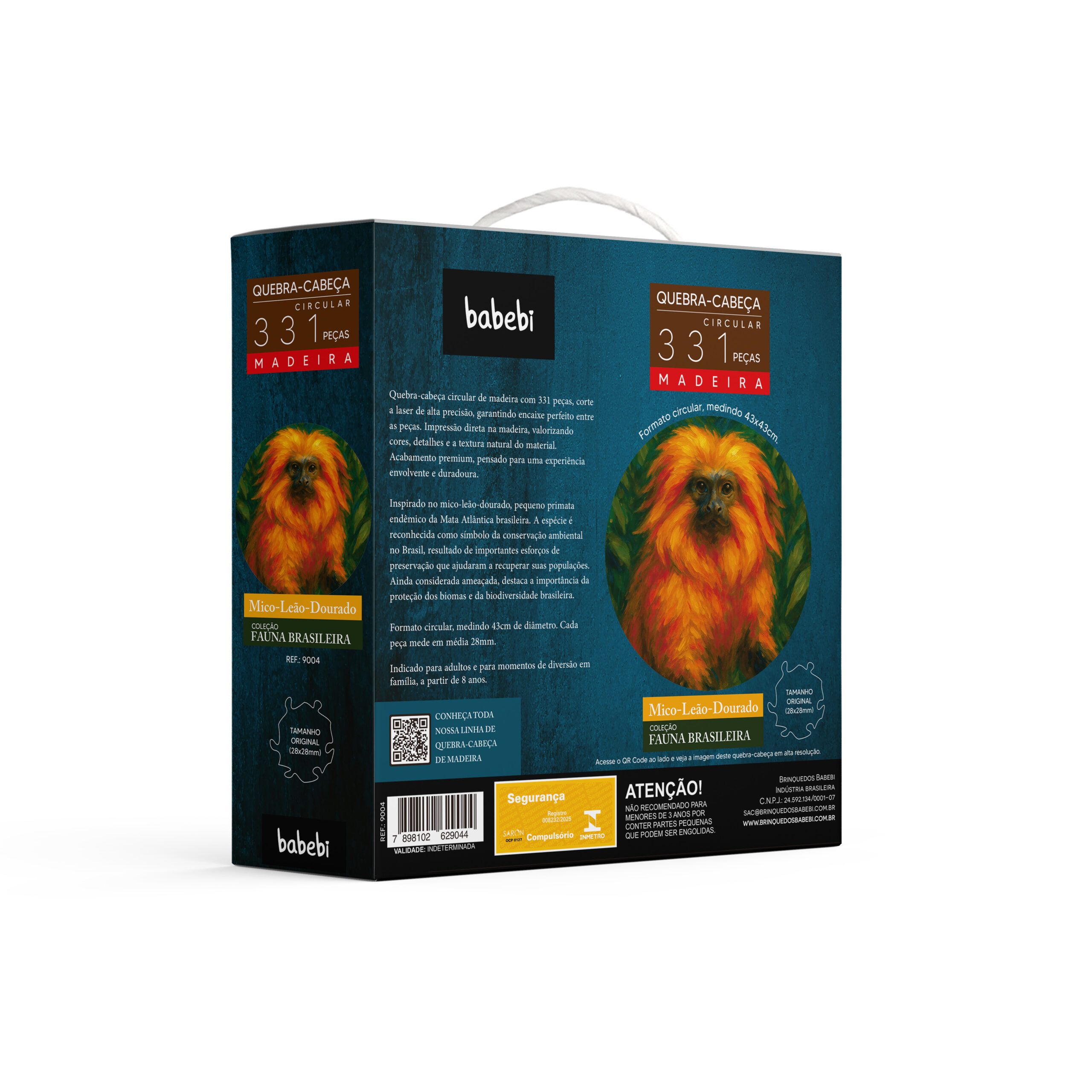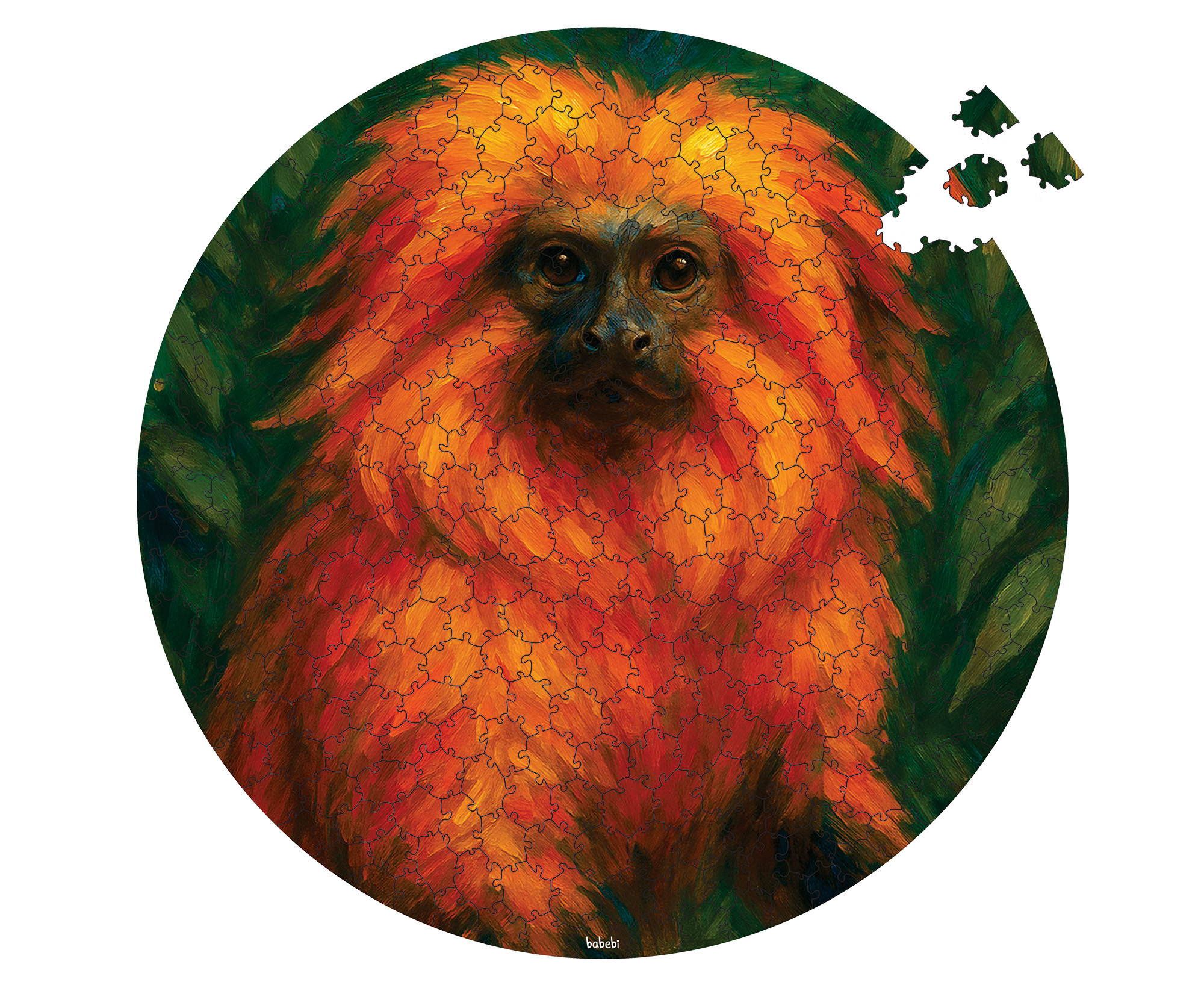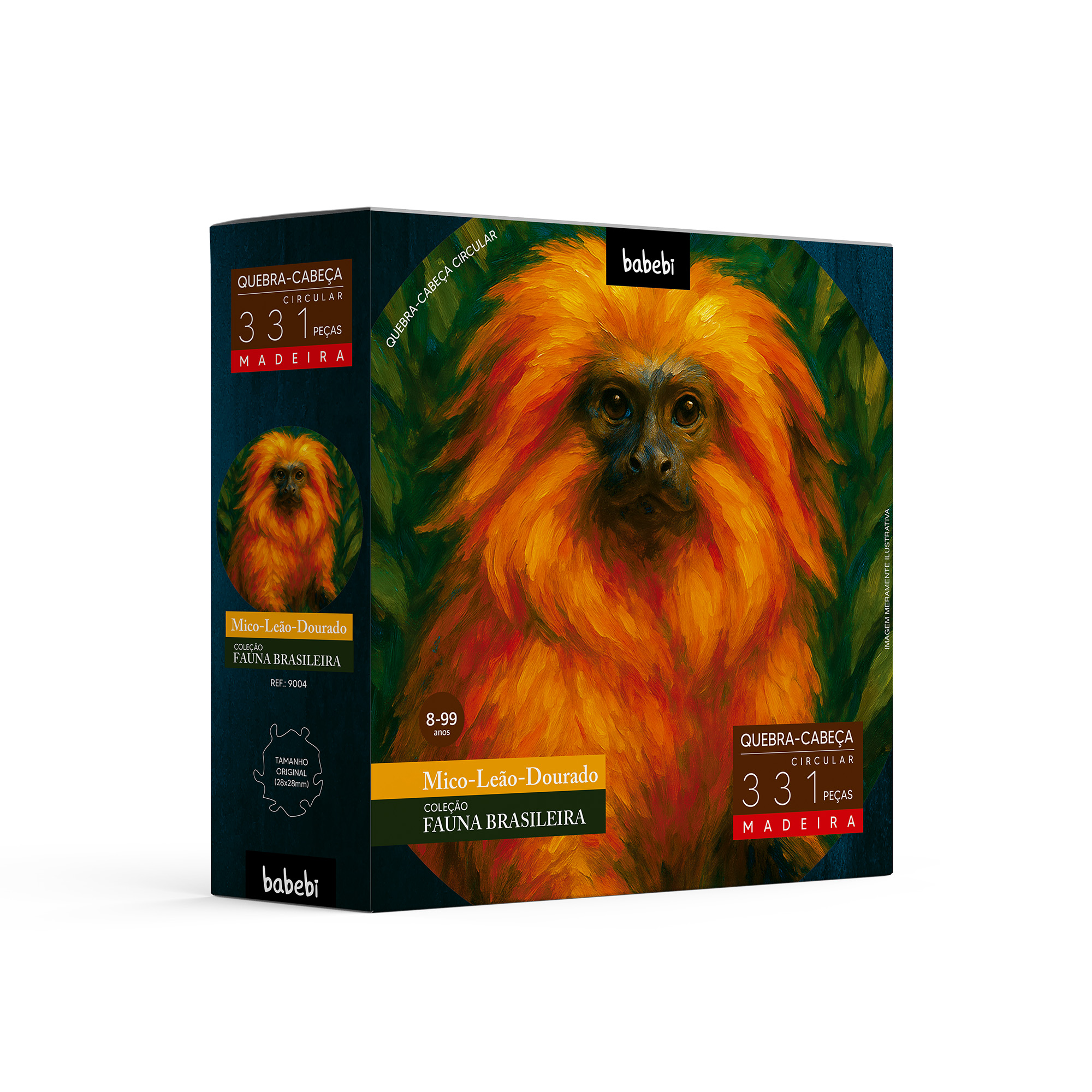Um retrato vibrante de um dos símbolos mais importantes da conservação ambiental brasileira. O quebra-cabeça circular Mico-Leão-Dourado traz a força e a delicadeza desse pequeno primata endêmico da Mata Atlântica, conhecido por sua marcante pelagem dourada.
