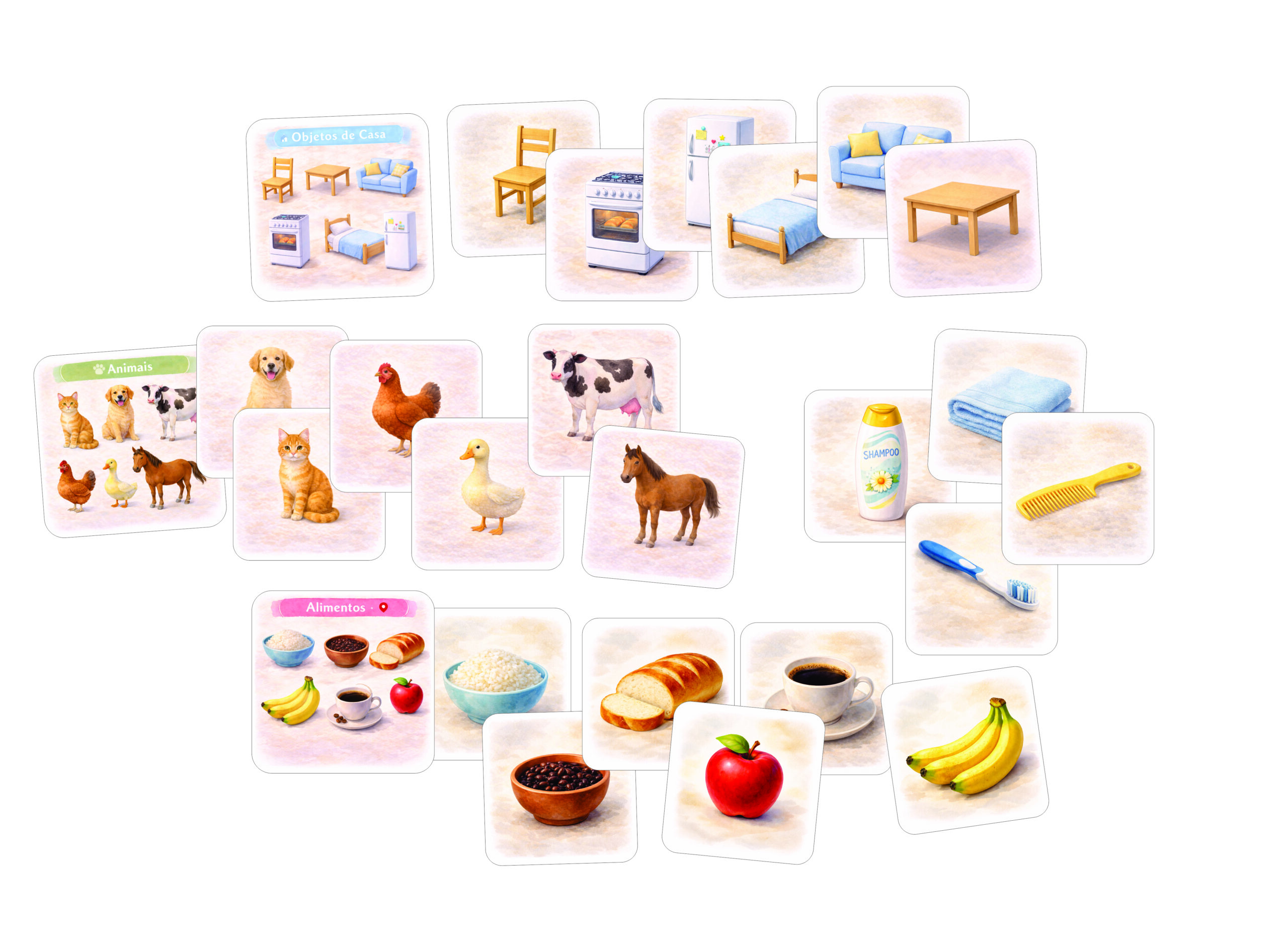 As ilustrações realistas e acolhedoras facilitam a identificação visual, estimulam a atenção e favorecem o diálogo, permitindo que o recurso seja utilizado de forma terapêutica, familiar ou institucional, sempre respeitando o ritmo e a autonomia de cada pessoa.